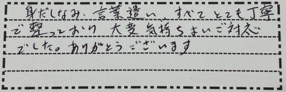 今回は作業担当者の身だしなみ、対応についてお褒めのお言葉をいただきました。